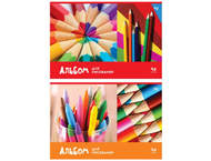 Обложка из мелованного картона. Внутренний блок — бумага белая офсетная. Переплет на скобе. Обложка имеет несколько вариантов дизайна (ассорти).